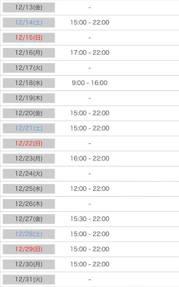 12月後半のシフトあげました〜!!!